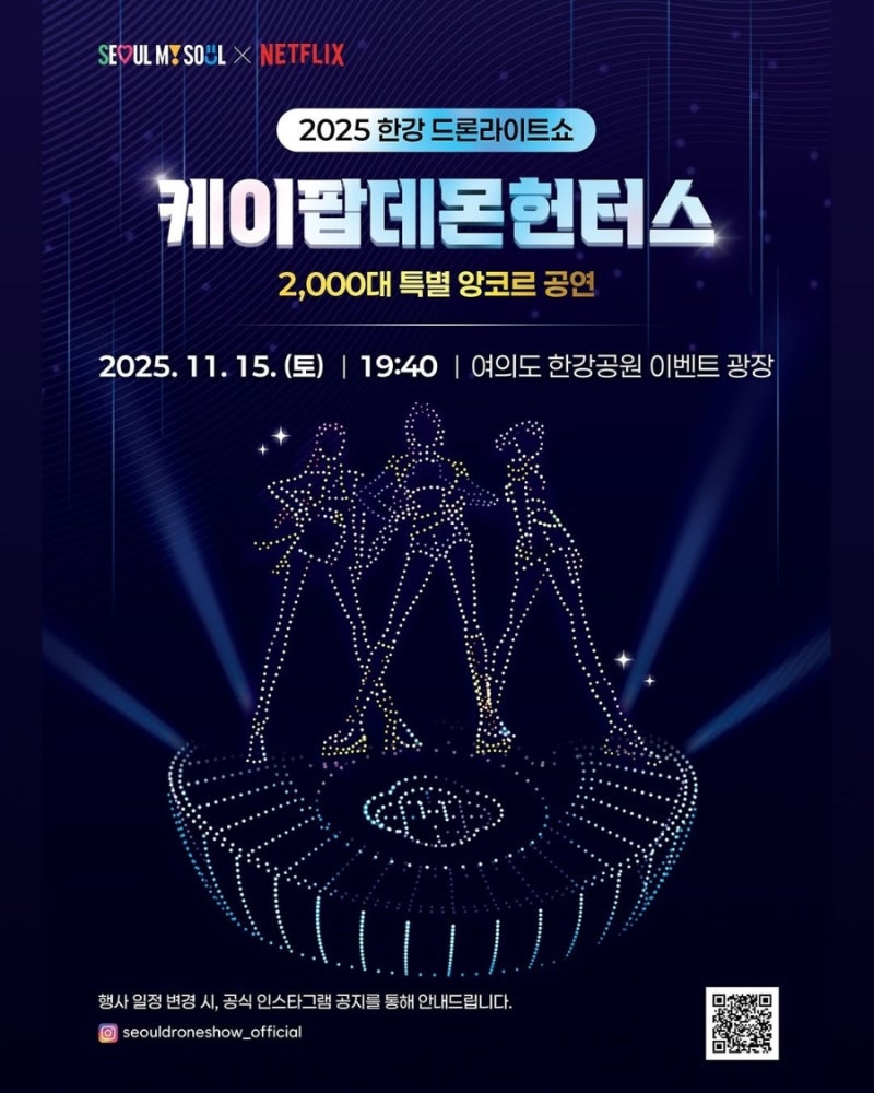 2025 한강 여의도 드론쇼, K팝 데몬헌터스 단 하루 앙코르! (11월 15일 단 1회)